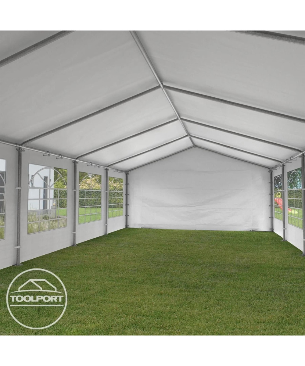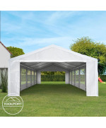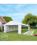 Leichtes, portables Partyzelt mit praktischem Klicksystem für den schnellen Auf- und Abbau mit ca. 180 g/m schwerer PE-Plane - zu 100% wasserdicht.