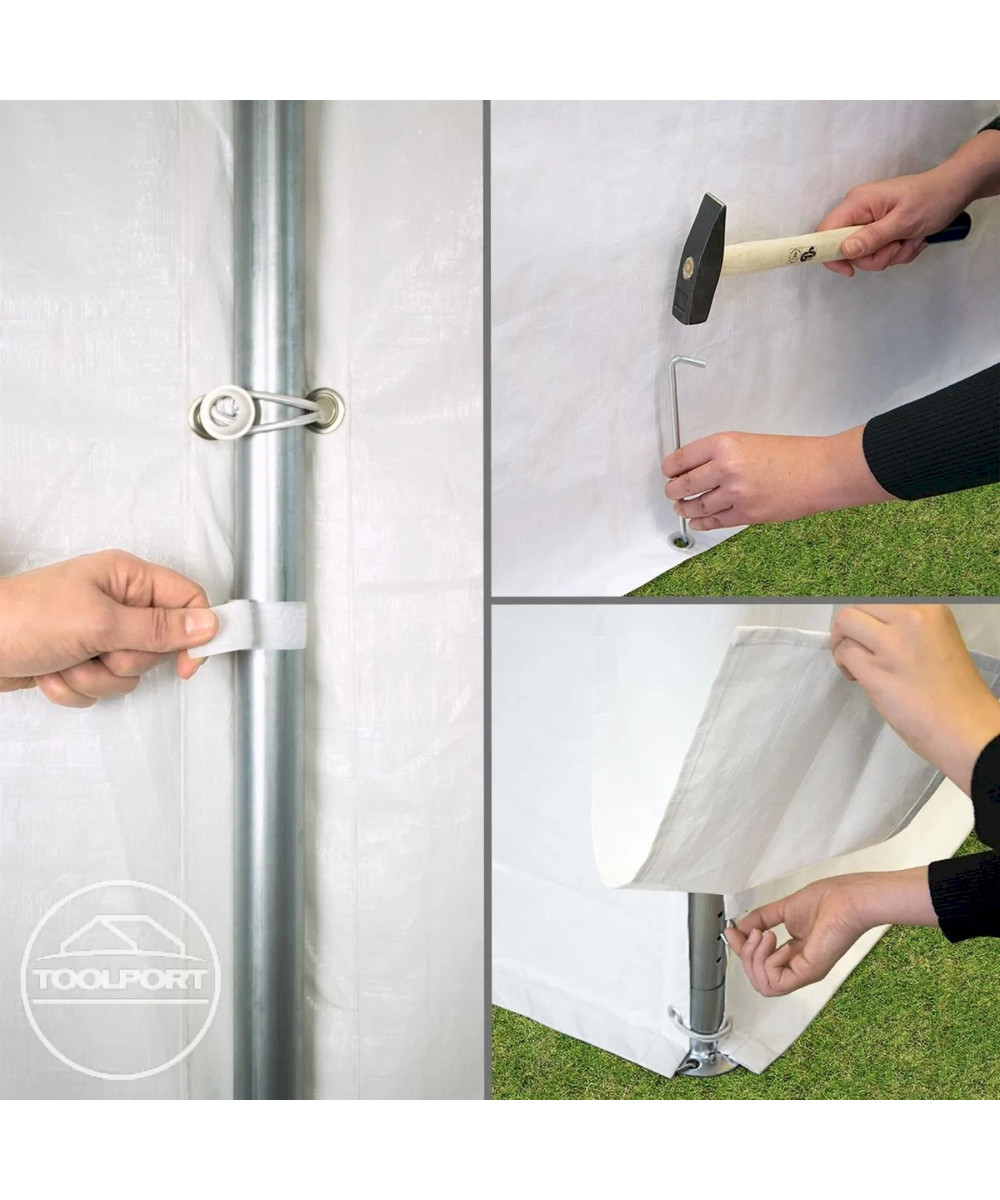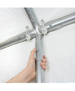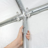 Die Zeltkonstruktion ist konzipiert für den schnellen oder spontanen Einsatz. Dank der Klickverbindung lässt sich die Konstruktion extrem schnell auf- und abbauen - und das komplett ohne Werkzeug. Die hochwertige Klickverbindung sorgt für eine einfache Handhabung und eine lange Nutzungsdauer. Vollverzinkte Stahlrohre bilden eine hervorragende Grundlage. Sie schützen zuverlässig vor Korrosion und Wetter und sind weniger stoßempfindlich - wie z.B. pulverbeschichtete Stahlrohre.