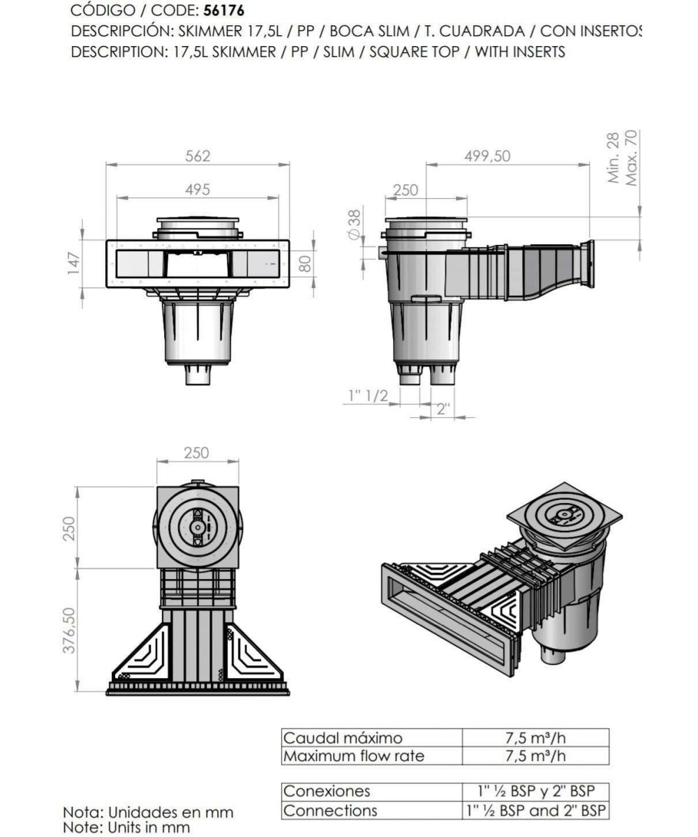 Der Skimmer 17.5 L entspricht den Regeln EN-13451-1 und EN-13451-3 und ist dadurch für Öffentliche und Private Schwimmbäder zugelassen.