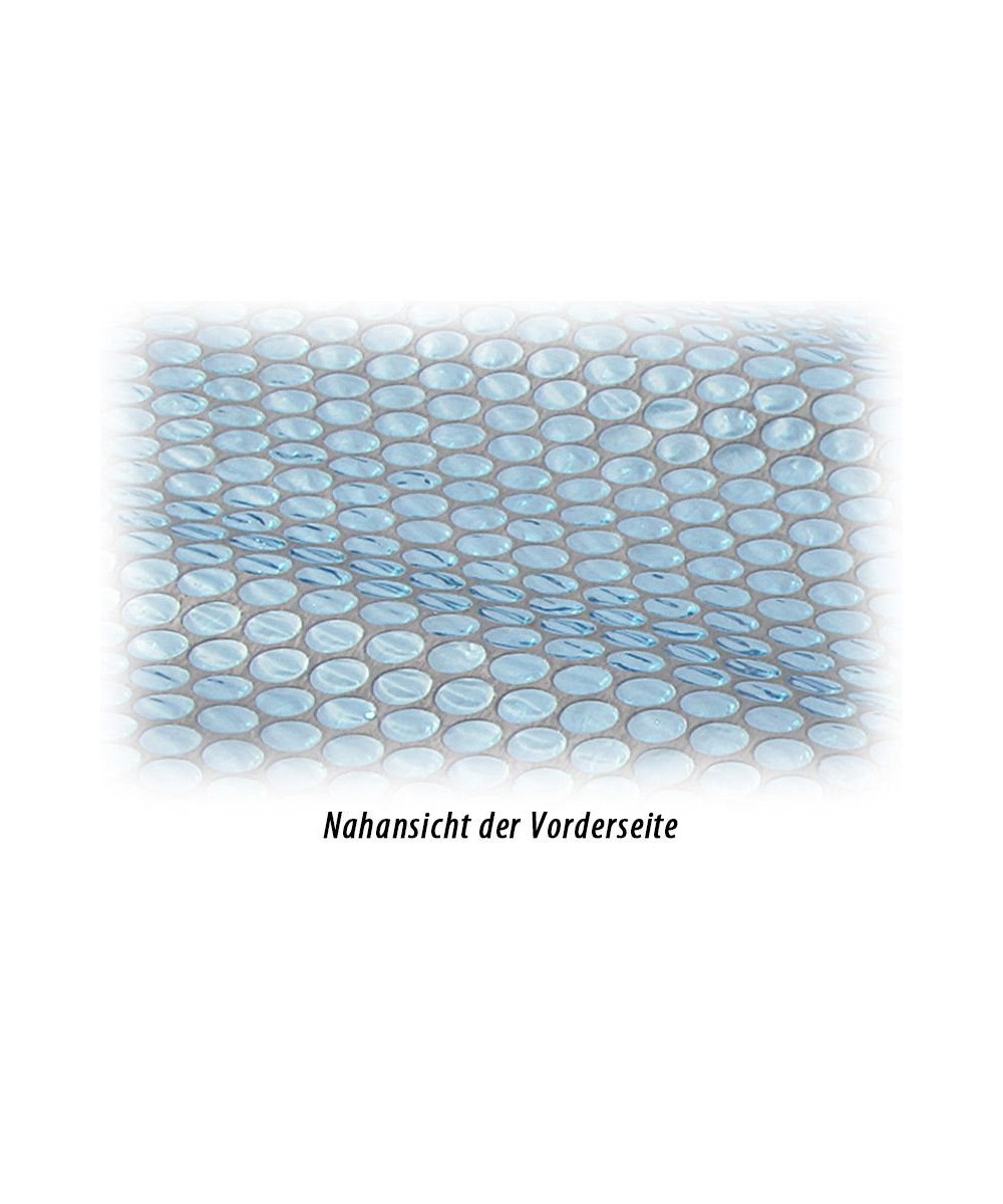 Die Vorderseite ist blau, die Noppenseite ist schwarz, was einen besseren Solareffekt zur Folge hat. Das Wasser wird durch Auflegen der Solarfolie um bis zu 9° erwärmt.