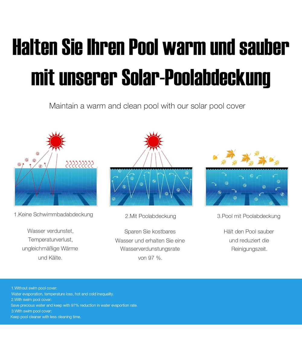 - SCHUTZ - Die Luftkammerfolie schützt Ihren Pool vor Verschmutzung und sorgt gleichzeitig dafür, dass sich das Wasser nicht zu stark abkühlt. Die Folie sorgt dafür, dass das Wasser im Becken westlich länger warm bleibt.