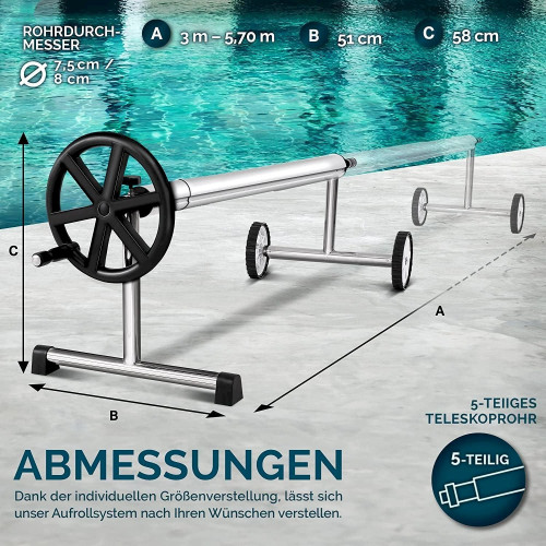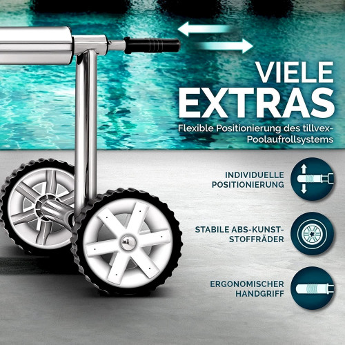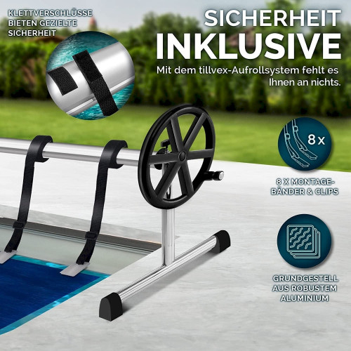 tillvex Pool Aufroller 3 - 5,70 m Aufrollsystem für Solarplane inkl. Bänder