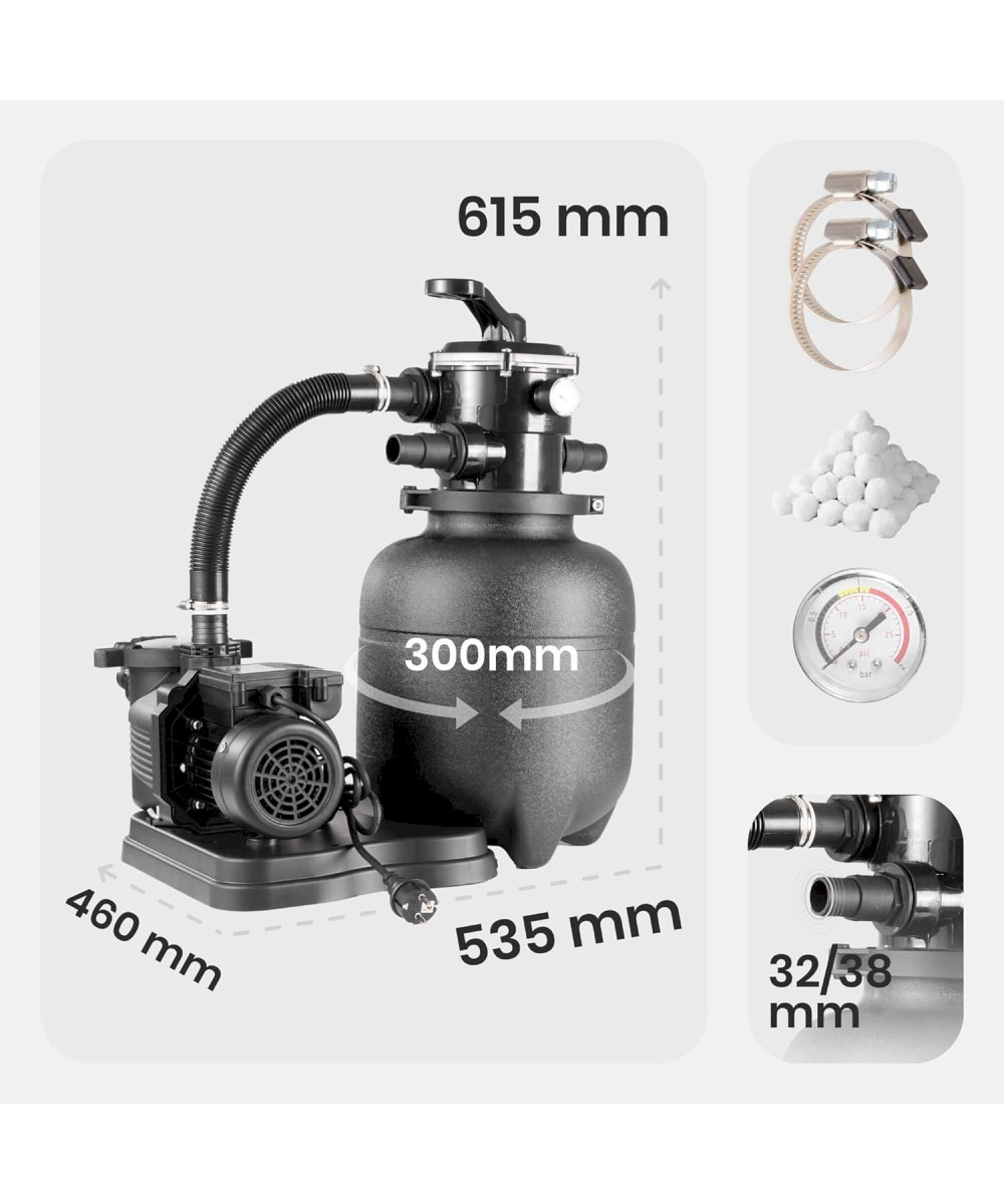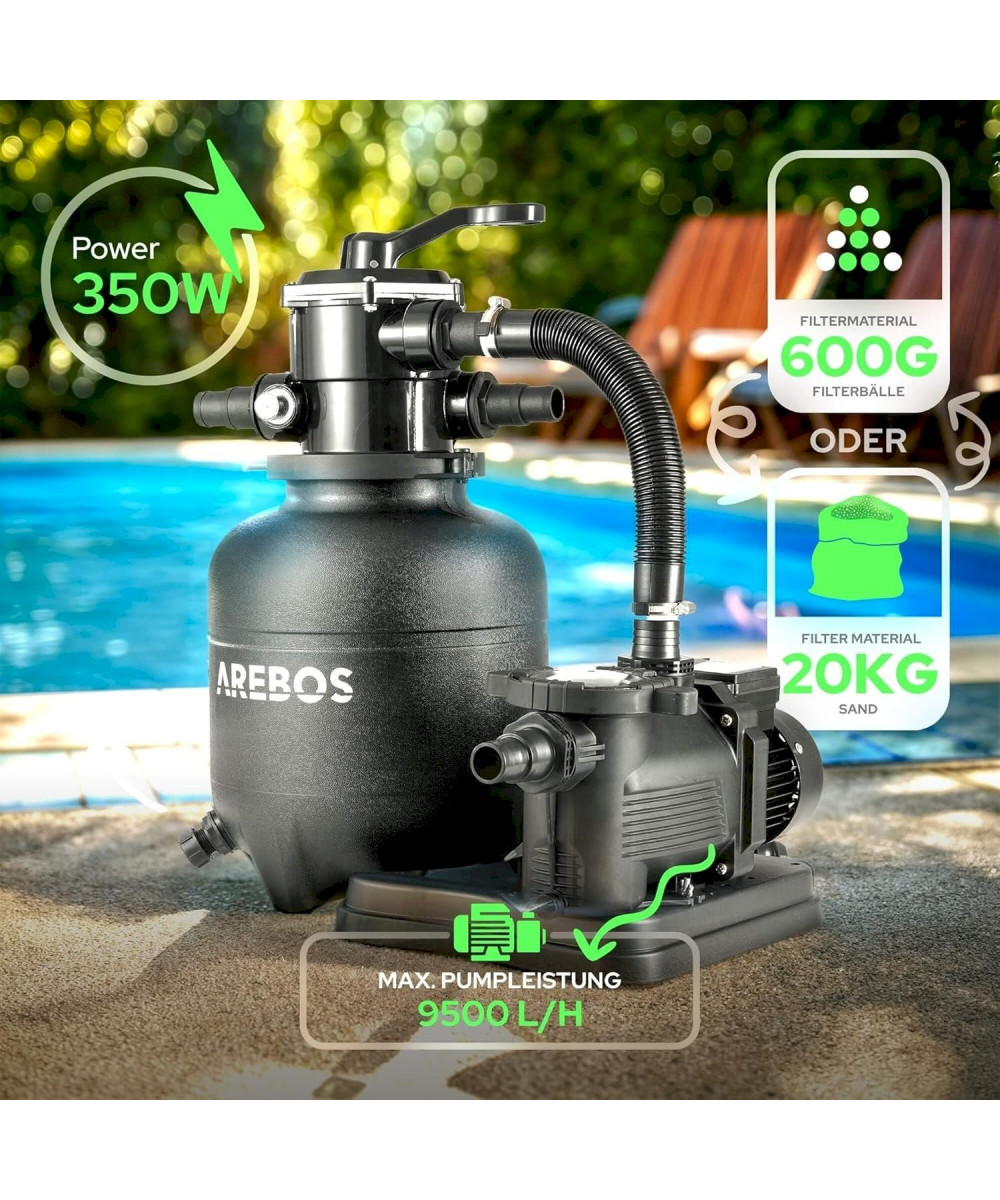 AREBOS Sandfilteranlage mit Pumpe 350W 9500 l/h schwarz