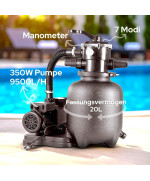 Für den Betrieb mit Sand ist ein Filtersandvolumen von 20 kg mit einer Körnung von 0,7–1,2 mm (nicht im Lieferumfang enthalten).