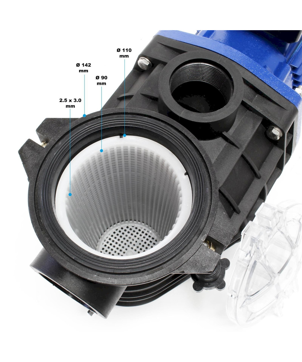 Diese Schwimmbadpumpe sorgt für Ihren ungetrübten Badespaß und eignet sich ideal, um im Filterkreislauf Ihres Schwimmbads installiert zu werden. Mit dem leistungsstarken 3000 Watt Motor arbeitet die Pumpe effizient und gleichzeitig sehr leise. Die Schwimmbadpumpe kann unmittelbar vor dem Filterkessel montiert werden und saugt 34800 Liter pro Stunde in die Filteranlage, in der das Wasser gereinigt und anschließend wieder in das Schwimmbecken gespült wird. Auf diese Weise verhindern Sie eine Algenausbreitung oder, dass sich Keime im Pool sammeln. Die maximale Förderhöhe der Schwimmbadpumpe beträgt 19 Meter.