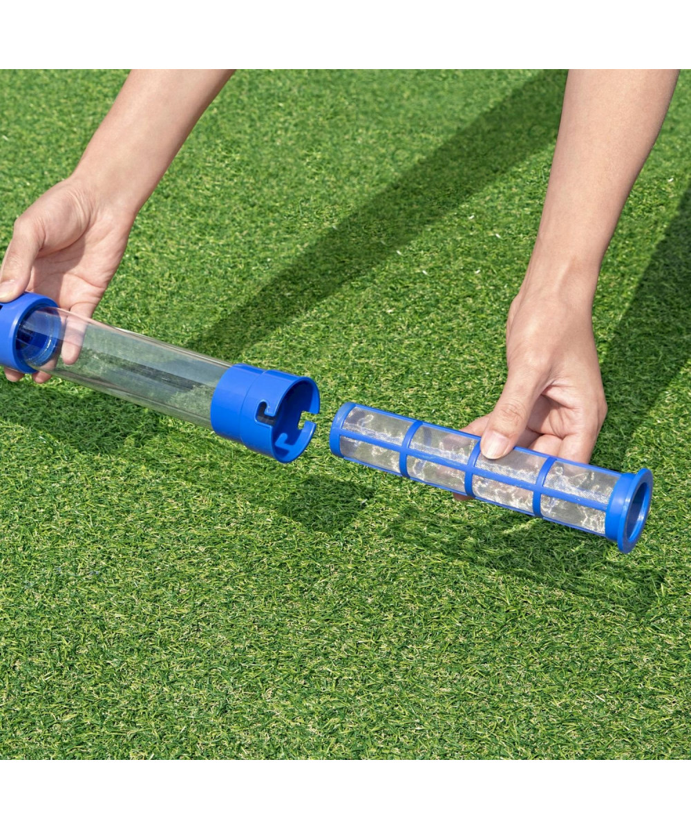 Mit dem akkubetriebenen Poolsauger AquaSurge™ von Flowclear™ ist die Poolpflege das reinste Kinderspiel. Dank des praktischen Betriebes per Akku gehört lästiges Verheddern eines Kabels der Vergangenheit an. Dieser Poolsauger besitzt eine Laufzeit von bis zu 50 Minuten und kann nach Gebrauch zum Auflade einfach an die Steckdose angeschlossen werden. Im Lieferumfang sind außerdem zwei austauschbare Saugköpfe enthalten, mit denen Sie sowohl flache Wände als auch die Ecken Ihres Pools reinigen können. Die Bedienung per einfachem Knopfdruck macht den Sauger zu einem leicht zu handhabenden Poolzubehör, welches dank der 3-teiligen Stange in Pools bis Ø 610 cm verwendet werden kann. Dank des transparenten Schmutzbehälters können Sie genau ablesen, wann dieser geleert werden muss.