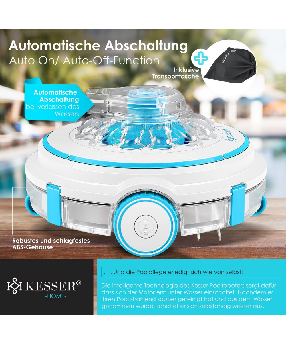 KESSER Aqua-9000 Akku-Poolroboter bis 45m² weiss-blau