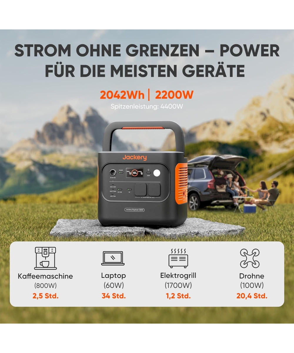 Akkukapazität 2.042 Wh · Tragbar · Max. Leistung 2,2 KW · Powerstation · 2200 Watt Ausgangsleistung