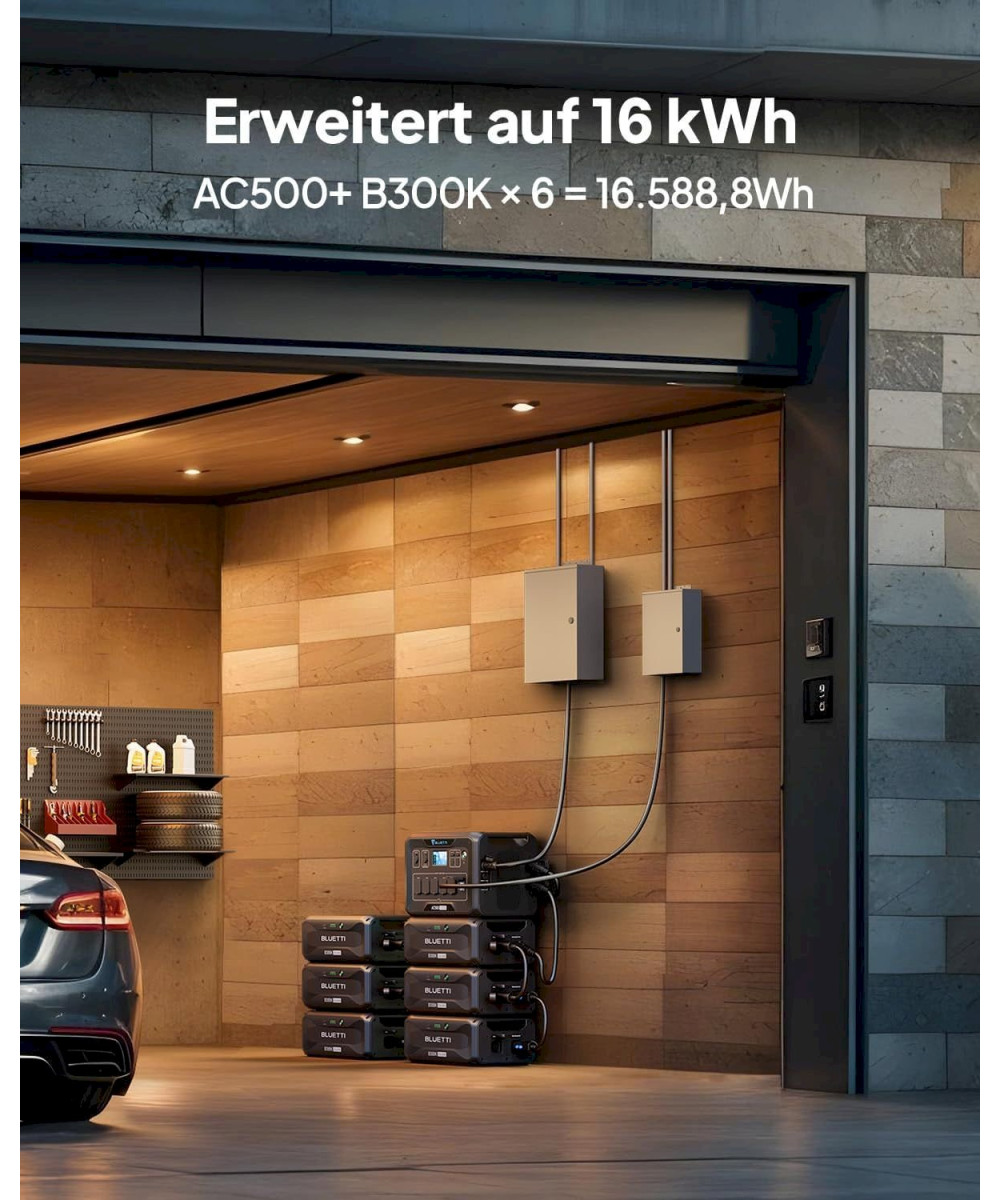 B300K lässt sich nahtlos in die Kraftwerke AC200L, AC200MAX, AC300 und AC500 integrieren, sodass Sie Ihr Energiesystem je nach Bedarf flexibel erweitern können und B300K Ihre Anforderungen erfüllen kann.