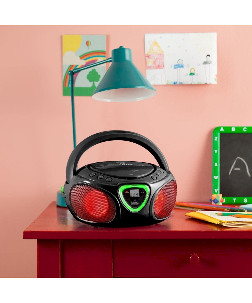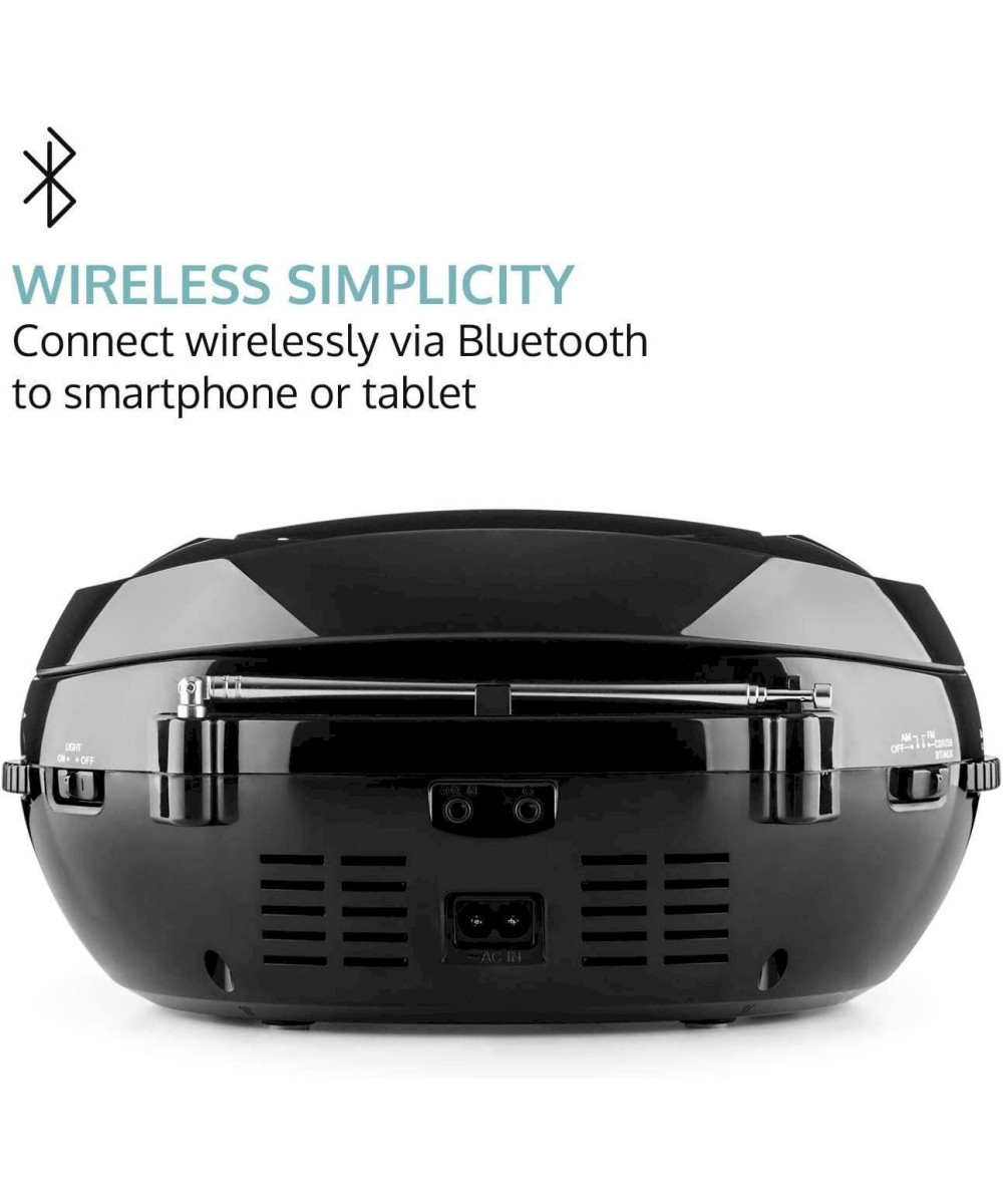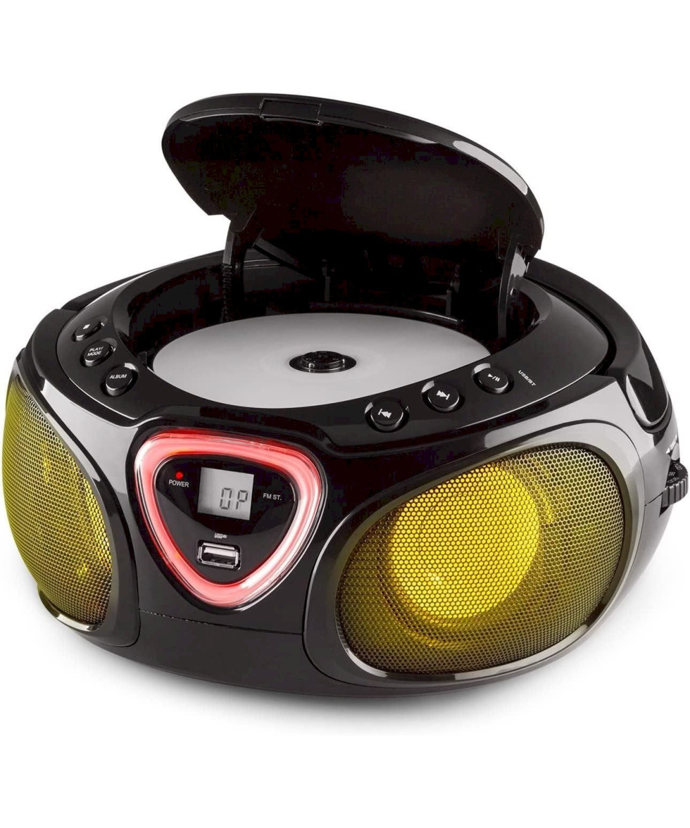 Flashdance! Die auna Roadie CD Boombox lässt die Farben tanzen und bringt mit CD-Player, Bluetooth 5.0 Konnektivität und FM-Radio ordentlich Schwung in die Hütte.