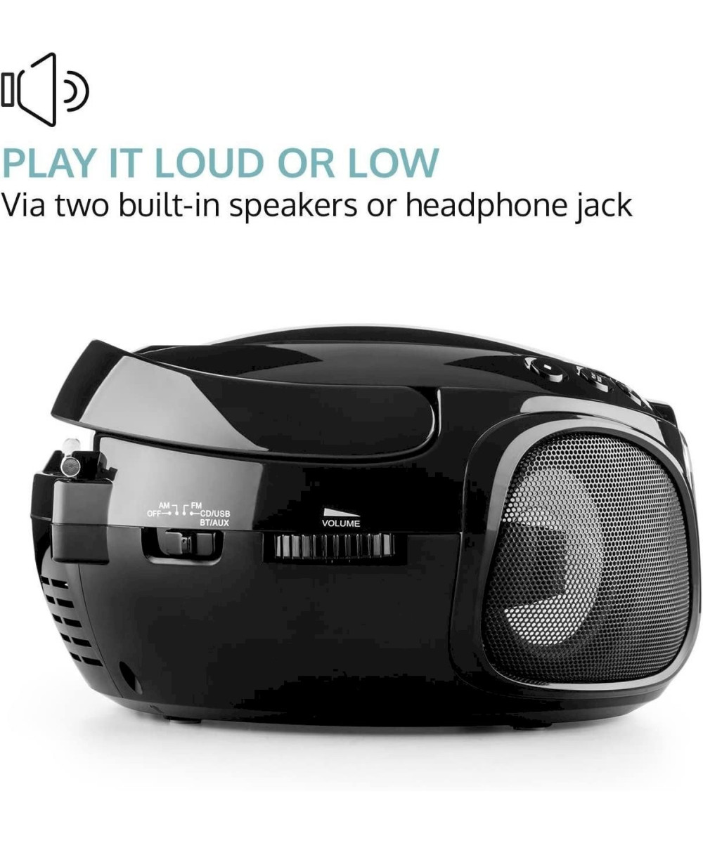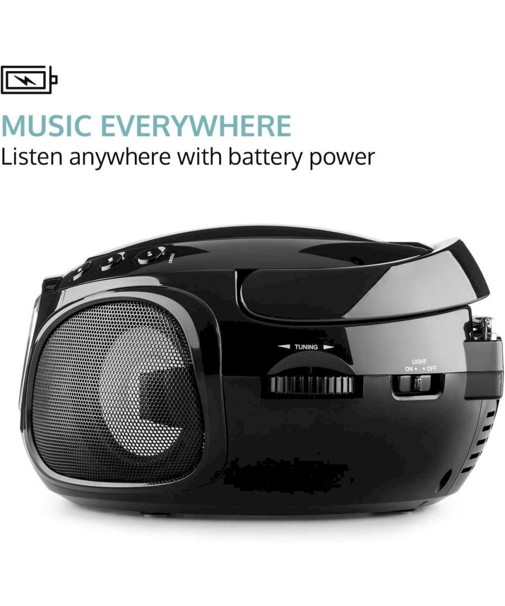 - Immer dabei: tragbare CD-Boombox mit integriertem Radio