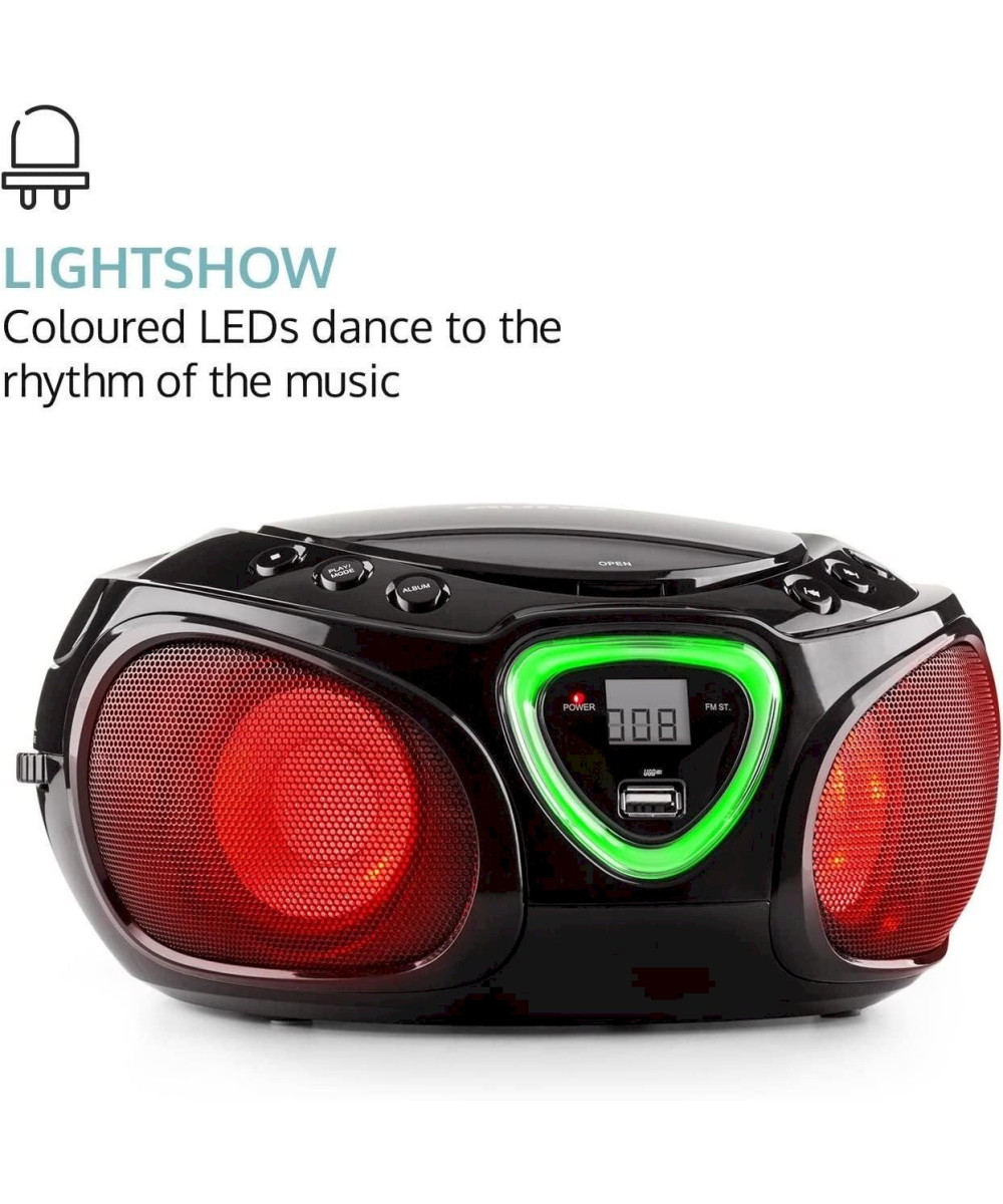 Roadie CD Boombox UKW-Radio Lichtshow CD-Player Bluetooth 5.0 - schwarz