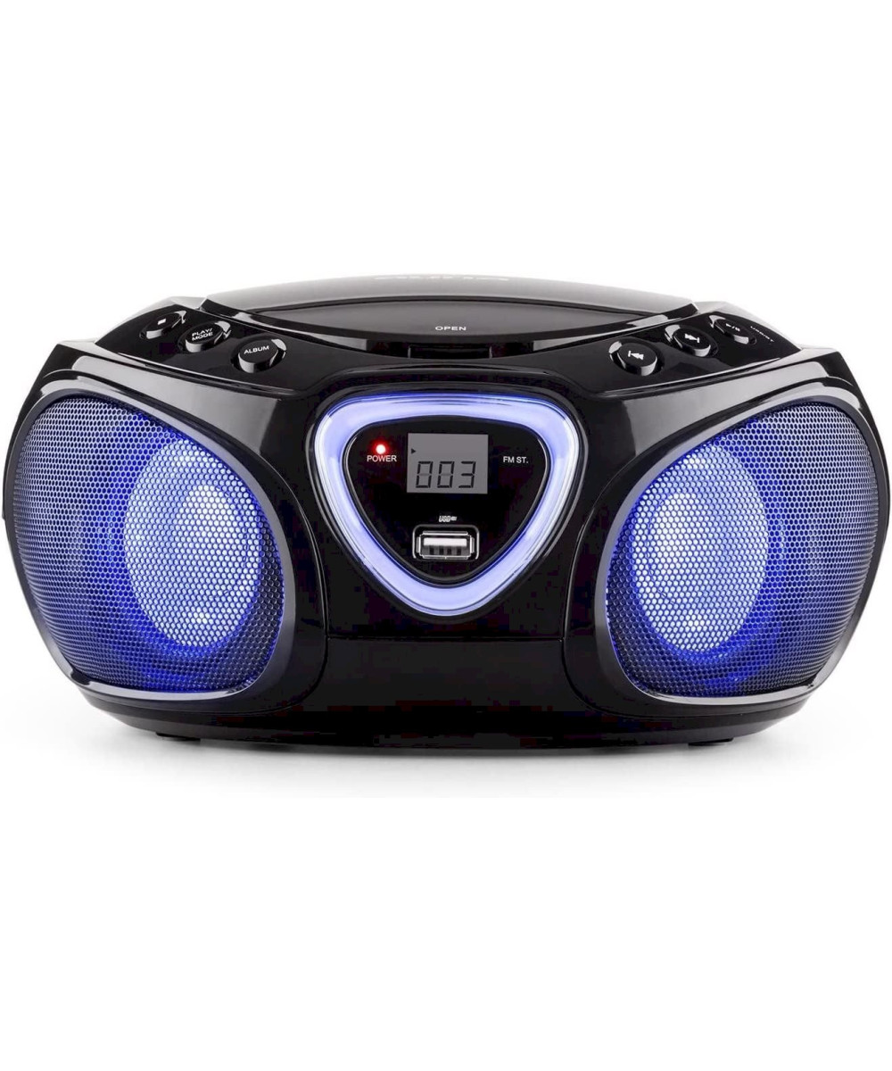 Bei der auna Roadie Boombox kannst du den Rhythmus nicht nur hören, sondern auch sehen. Mit 7-farbigem LED Disco Light Effect tanzt die portable Minianlage im Takt der Musik. Im topseitigen CD-Player finden Audio-CDs genauso Aufnahme, wie selbst zusammengestellte Sampler im MP3-Format. Das geht natürlich genauso per Stick und integriertem USB-Port. Über die Bluetooth 5.0 Schnittstelle verbinden sich Tablet, Smartphone oder Stereoanlage und streamen ganz easy ihre Musik auf den kleinen Roadie - what a feeling! Das integrierte FM-Radio liefert Musik, Unterhaltung und Informationen von deinen lokalen Radiosendern.