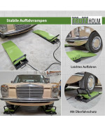 Die hydraulische Auffahrrampe von TRUTZHOLM aus robustem, pulverbeschichtetem Stahl wurde entwickelt, um den Anforderungen von Werkstätten und begeisterten Schraubern gerecht zu werden.
