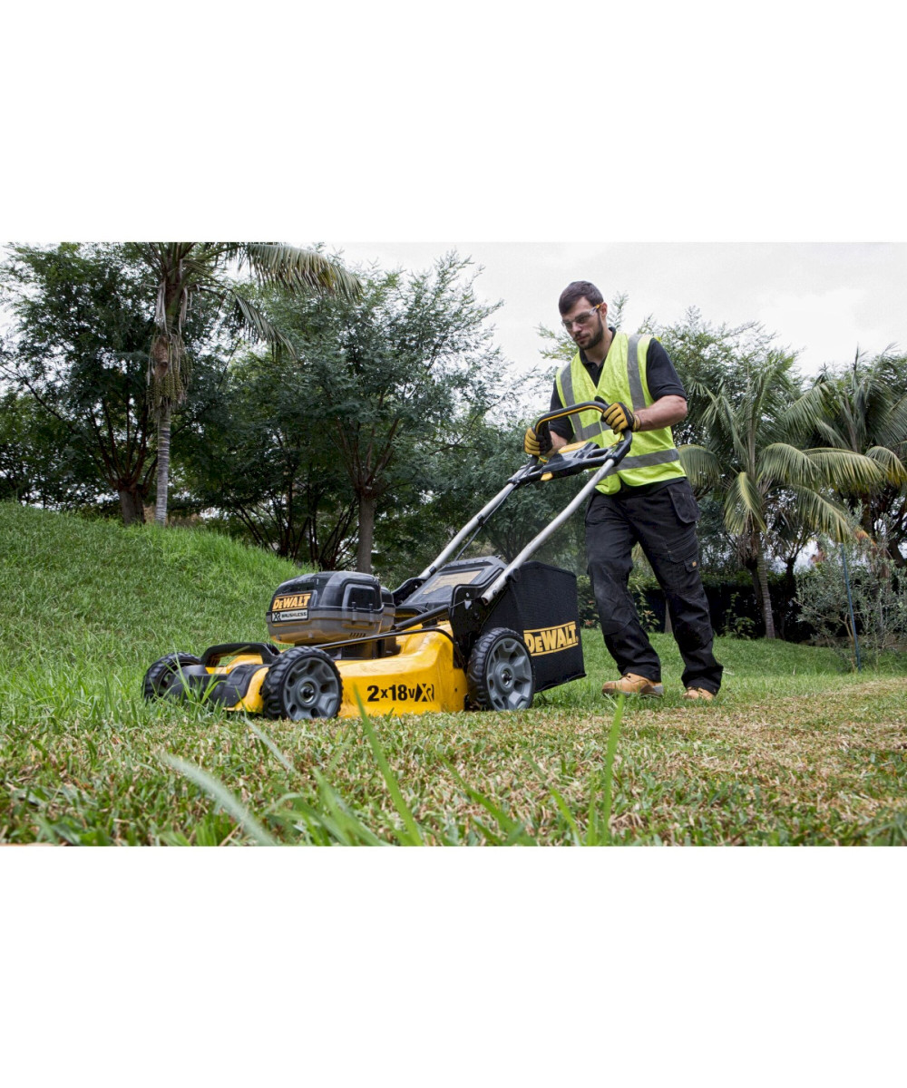 Der elektrische Akku-Rasenmäher DeWalt DCMW564P2-QW ist das perfekte Gerät für jemanden, der größere Rasenflächen mähen muss, da er einen bürstenlosen Elektromotor hat, der maximale Energieeffizienz und eine bedeutende Arbeitsautonomie gewährleistet.