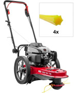 Der Güde Wiesenmäher WM 561 TRI steht für Power, Effizienz und maximale Sicherheit. Herzstück des Geräts ist der 4-Takt Power-Engine Motor, der eine beeindruckende Leistung und Langlebigkeit garantiert. Das Gehäuse, gefertigt aus robustem Stahlblech, schützt den Motor und gewährleistet eine hohe Lebensdauer des Mähers. Für einen kinderleichten Start sorgt die integrierte Primerpumpe. Besonders auf unebenen Flächen zeigen sich die Vorteile der großen Hinterräder, die eine einfache Manövrierfähigkeit ermöglichen. Der 4 mm Doppelfaden sorgt für saubere Schnitte, selbst bei dichtem Grasbewuchs, während die kugelförmige Frontkufe das Gerät sanft über den Boden gleiten lässt. Ein besonderes Highlight ist der zuschaltbare Fadenkopf, welcher über einen Sicherheitsbügel gesteuert wird und damit höchste Sicherheit bietet. Zusätzlich trägt der Spritzschutz zur sicheren Nutzung bei. Der höhenverstellbare Fahrbügel sorgt für ergonomisches Arbeiten in jeder Position. Und sollte der Faden einmal zur Neige gehen, ist dank der mitgelieferten 4 Ersatzfäden ein schnelles Wechseln garantiert. Der WM 561 TRI ist die ideale Wahl für Weiden, große Flächen – sei es mit feinem oder grobem Grasbewuchs – sowie Gärten mit schwer zugänglichen Ecken und Hindernissen. Mit diesem Wiesenmäher werden Gartenarbeiten zum wahren Vergnügen!