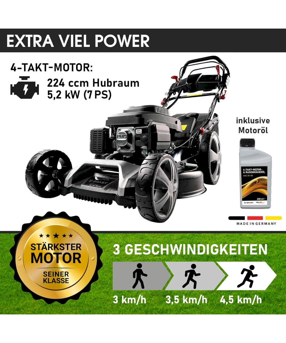 Mit dem im Lieferumfang inkludierten BRAST Hochleistungs-Motoröl sind Sie sofort startklar für Ihre Gartenarbeit: