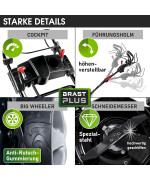 - Kugelgelagerte Big Wheeler Räder mit Grip-Profil für leichteres Fahren auf unebenen Flächen