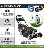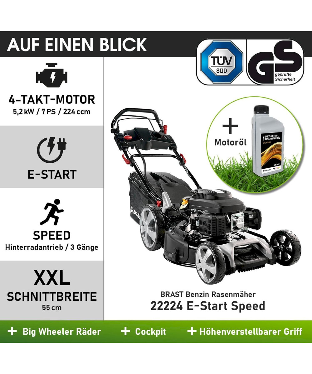 BRAST 22224 E-START SPEED Benzin Rasenmäher 55cm Schnittbreite mit Selbstantrieb, variabler Geschwindigkeit und Elektro Start