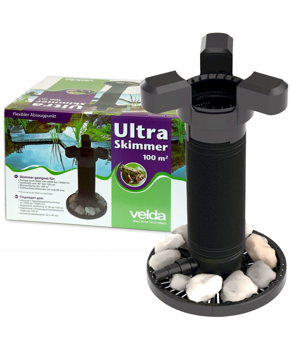 Dieser Ultra Skimmer ist der ideale Oberflächen Absauger, speziell für große Teiche. Das flexible Rohr kann einfach verlängert und im Teich fixiert werden. Dieser Absaugpunkt ist die fertige Lösung für jeden Teich. Einsatzbereit ohne Werkzeug!