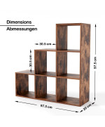 Treppenregal 6 Fächer 97,5x29x97,5cm vintage braun