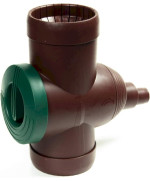 Hochwertige Ausführung aus dickwandigem, stabilem Kunststoff. Anschlussmöglichkeit für HT-Rohre DN70 und DN50 sowie 1¼" und ¾" Schläuche.
