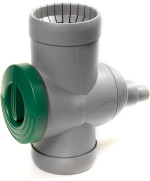 Hochwertige Ausführung aus dickwandigem, stabilem Kunststoff. Anschlussmöglichkeit für HT-Rohre DN70 und DN50 sowie 1¼" und ¾" Schläuche.