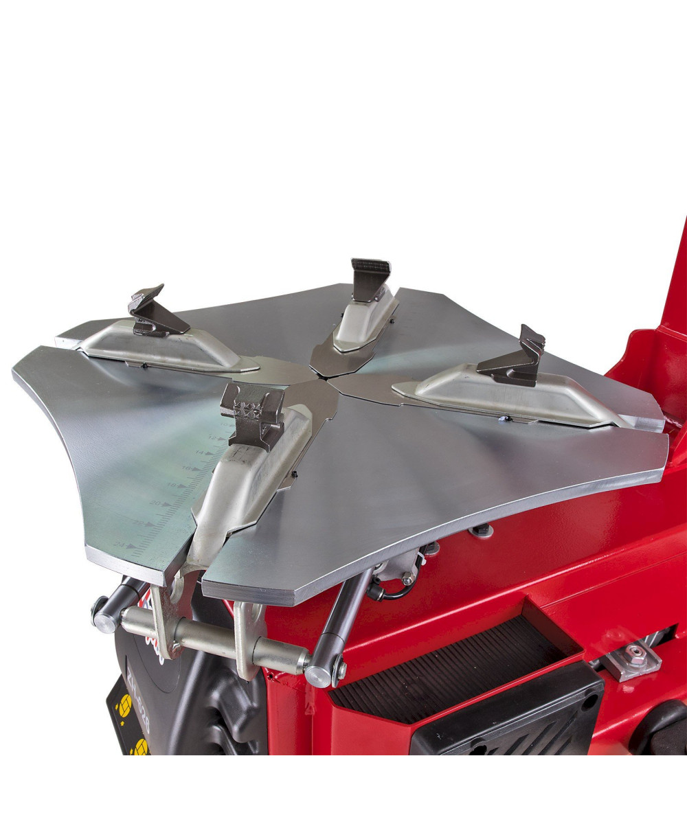 Umfangreiche und individuelle Einstellmöglichkeiten ermöglichen - dank dreifachem Hilfsarm - einen einfachen Wechsel bei Stahl und Alufelgen. Alle Bedienelemente sind optimal auf den Monteur ausgerichtet. Durch den motorgesteuerten Zweiwege-Montageteller, sowie die ergonomische Position der Pneumatik-Fußpedalerie, geht die Arbeit mühelos, schnell und qualitativ hochwertig von der Hand - und das bis zu einer Felgengröße von 24 Zoll.