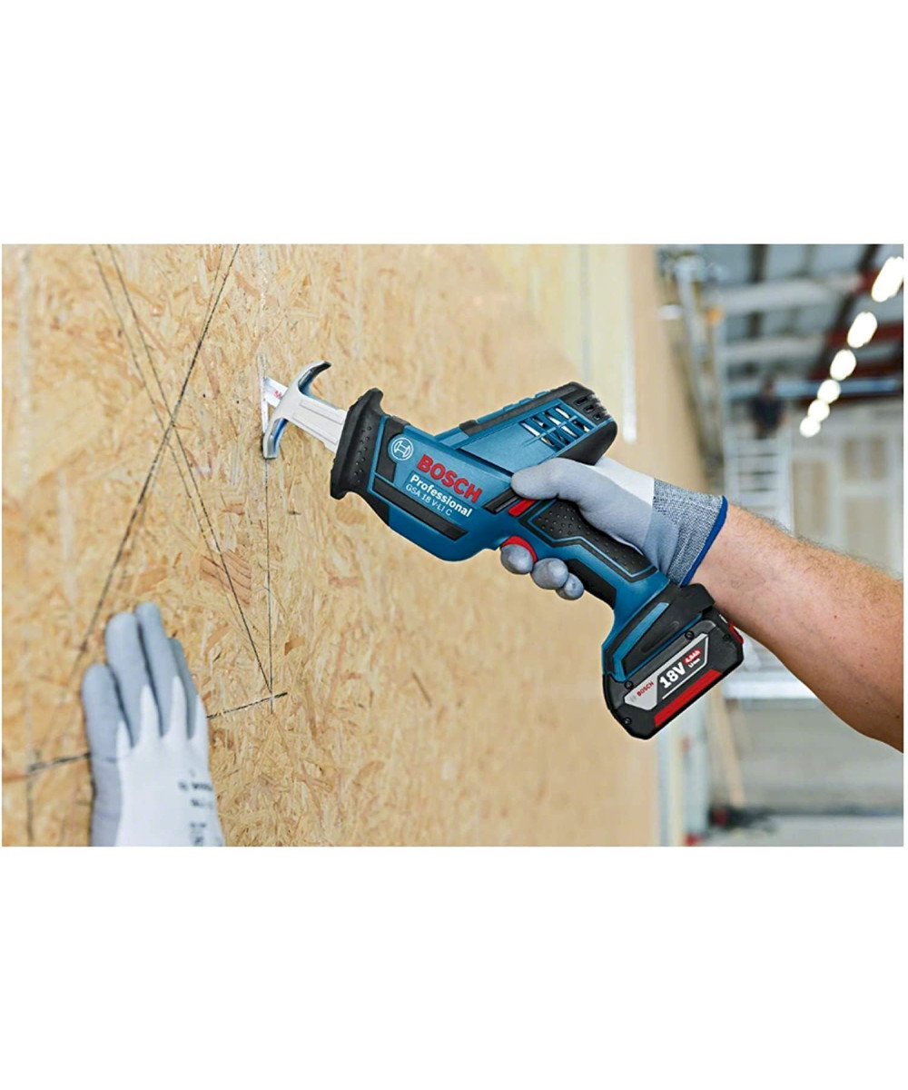 Die Bosch Akkusäbelsäge GSA 18 V-LI C Professional überzeugt mit sehr geringen Vibrationen und angenehmer Handhabung. Die kompakte Bauform eignet sich für vielfältigen Einsatz, auch einhändig, und für Überkopfarbeiten. Der ergonomisch geformte Handgriff mit Komfortzone und Softgrip-Bereich sorgt dabei für sicheren Halt und ermüdungsarmes Arbeiten. Der kraftvolle Motor ermöglicht einen schnellen Sägefortschritt und eine lange Akku-Laufzeit. Das robuste Design der Akku-Säbelsäge GSA 18V-LI C Professional in Heavy-Duty Bauweise wurde für jede Art von Anwendungen auf der Baustelle und in der Werkstatt entwickelt.