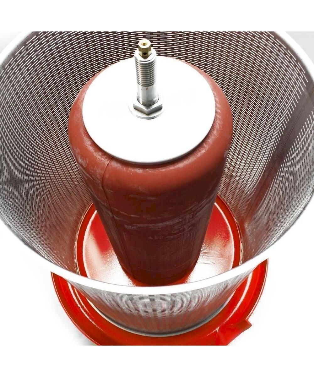 So schnell und leicht haben Sie noch nie so guten Saft gepresst: Einfach Obst, Trauben, Beeren usw. mahlen und in die Hydropressee geben, Wasserhahn öffnen und zuschauen, wie der Druck des einfließenden Leitungswassers das Mahlgut von innen nach außen gegen das Korbgitter presst.