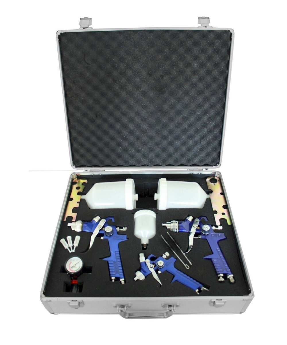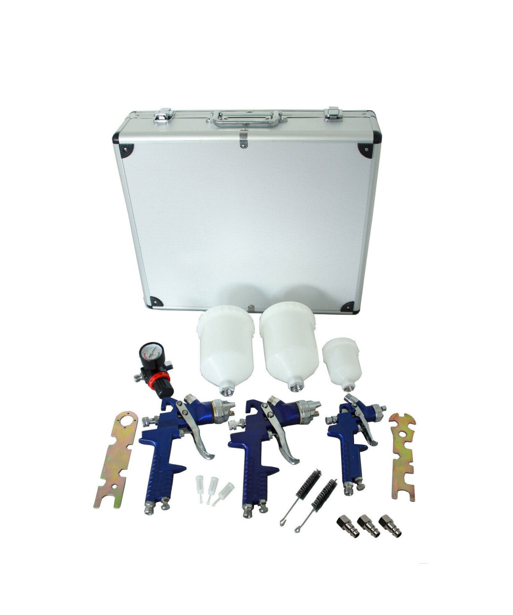 TrutzHolm 3x HVLP Spraypistole Lackierpistole Set Druckminderer Koffer Spritzpistole