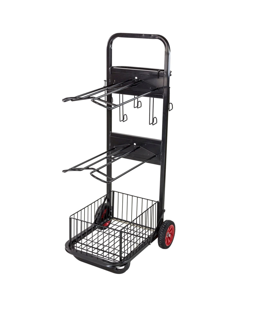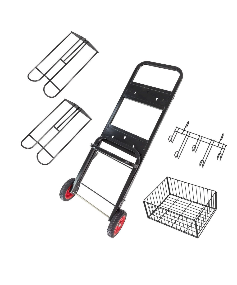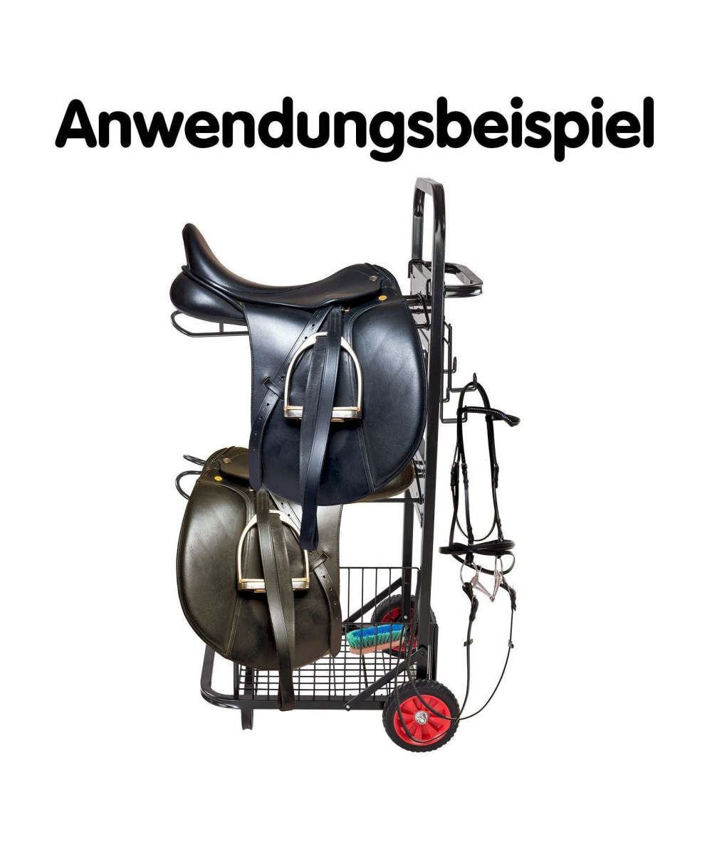Der Sattelwagen für 2 Sättel und Zubehör vereint gleich mehrere praktische Funktionen in Einem.