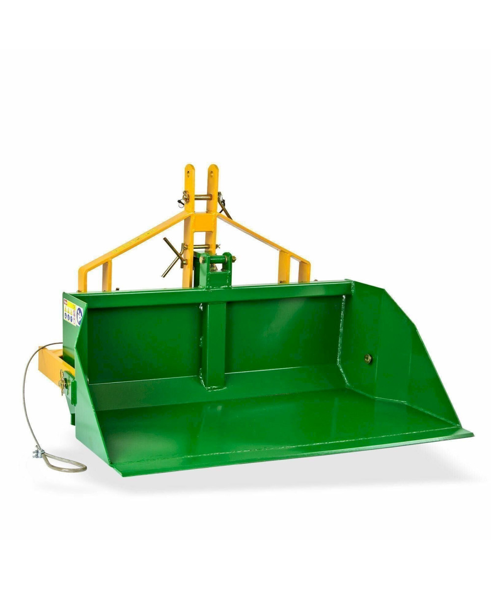 Die kompakte Leichtgut-Heckschaufel wurde aus hochwertigem Stahl gefertigt und mit einem mittig gelagerten Kippmechanismus versehen. Dadurch ist sie bequem über einen Seilzug vom Fahrersitz aus bedienbar, verfügt über eine Kategorie I und II Aufnahme und ist so für kleinere Traktoren - auch im kommunalen Bereich - bestens geeignet. Eine Schürfschiene erleichtert zudem das Beladen beim Rückwärtsfahren.