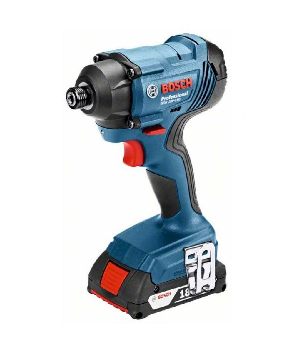 Der Bosch Akku-Schlagschrauber GDR 18 V-160 Professional ist ein sehr kompaktes Kraftpaket in der 18-Volt-Klasse. Er bietet ein hervorragendes Preis-Leistungsverhältnis bei den professionellen Drehschlagschraubern. Er erleichtert auch schwere Arbeiten dank seinem hohem Drehmoment und dem neuen ergonomischen Design. Die Bosch Electronic Cell Protection (ECP) schützt dabei den Akku vor Überlastung, Überhitzung und Tiefentladung. Der Akku-Schlagschrauber GDR 18 V-160 besitzt eine integrierte LED zur Beleuchtung des Arbeitsbereichs auch an dunklen Stellen.