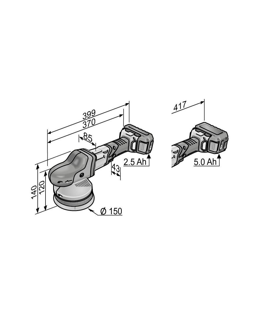 Max. Leerlaufschwingzahl 7.600 U/min · 150 Mm · 18 V · 2,1 Kg · Flächenart Für Glatte Oberflächen · Zielgruppe Gewerbe/Industrie/Profi · Bürstenloser Motor