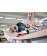 Der GEX 40-150 verfügt zudem über eine Staubbox mit integriertem Bosch Microfilter-System, einen 150-mm-Schleifteller mit Klettverschluss zur Schleifblattbefestigung, Drehzahlvorwahl und Vibration Control.