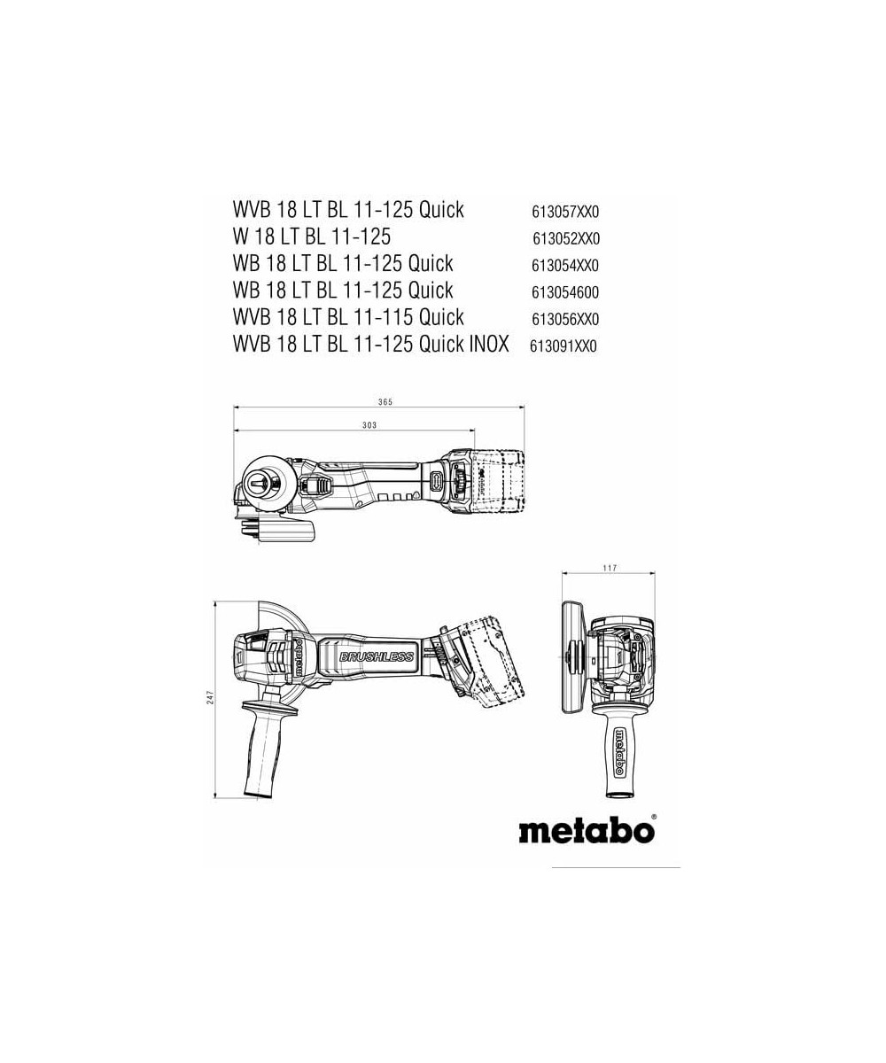 Metabo WVB 18 LT BL 11-125 Quick Akku-Winkelschleifer (613057840) ohne Akku ohne Ladegerät