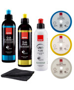 Dieses Set ist perfekt dafür geeignet Ihrem Fahrzeug neuen Glanz zu verleihen. Sie können dank dem 3-Schritt System jeden Poliervorgang ideal ausführen und sind mit qualitativ sehr hochwertigen Polituren und Polierschwämmen bestens ausgestattet. Geliefert wird Ihnen dieses Set mit drei Polituren und den dazu passenden Schwämmen. Desweiteren beinhaltet das Set auch noch das Premium Poliertuch mit dem Sie die letzten Polierreste einfach entfernen können.