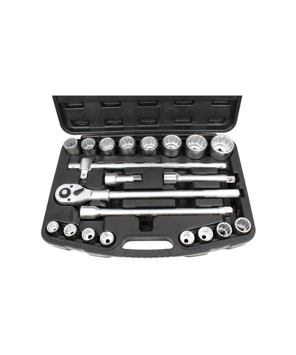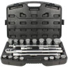 - 16x Steckschlüssel 3/4" in den Größen: 19, 21, 22, 23, 24, 26, 27, 28, 30, 32, 34, 36, 38, 41, 46, 50 mm