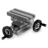 - Der Koordinatentisch ist aus massivem Grauguss und die Gewindespindeln sind aus Stahl. Die Schwalbenschwanzführungen können leicht über Schrauben nachgestellt werden. Dadurch hat der Kreuztisch hat eine lange Haltbarkeit