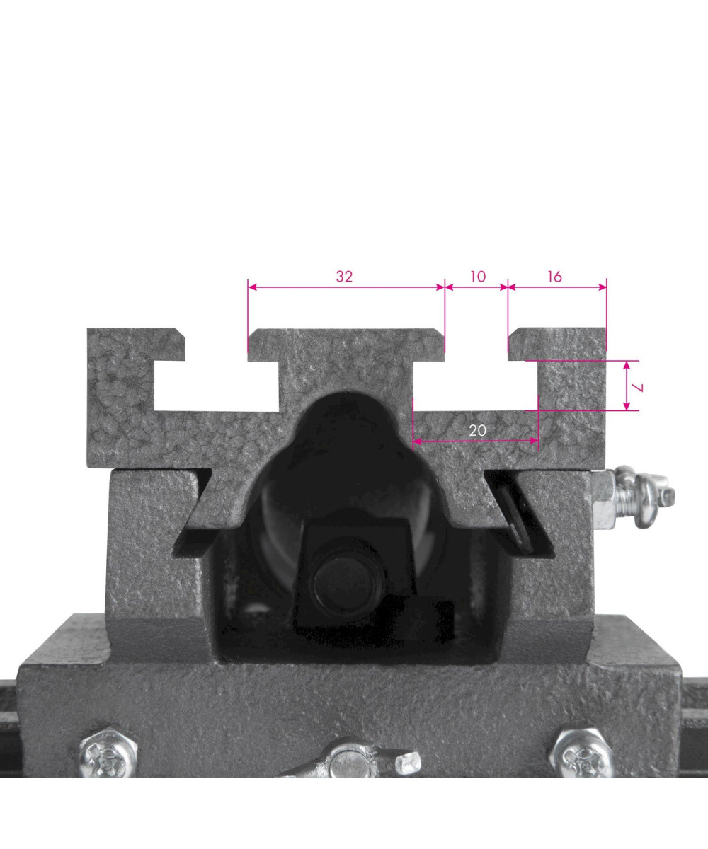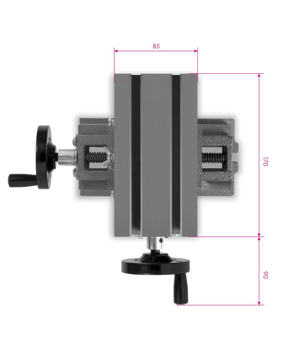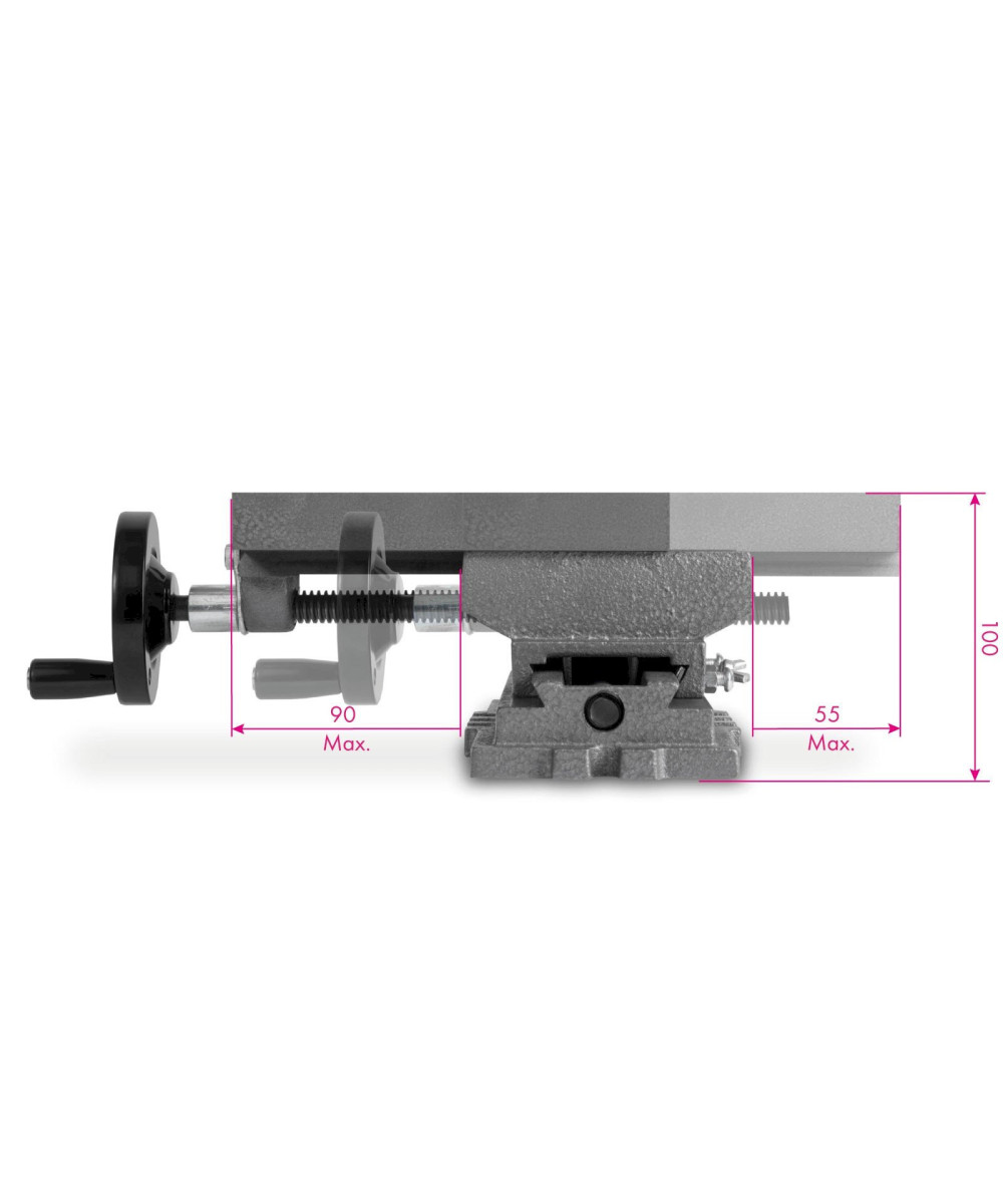 - Dieser massive 2 Achsen Kreuztisch aus Gusseisen und Stahl kann in der Profi- und Hobby-Werkstatt als Hilfe für präzise Bohr- und Fräsarbeiten eingesetzt werden. Die Arbeitshöhe beträgt 100 mm. Die beiden Nuten sind 20mm breit, 7mm hoch und haben eine 10mm Öffnung
