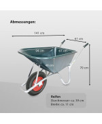- Maße (Gesamtlänge x Gesamthöhe x Griffabstand): ca. 141 x 70 x 61 cm