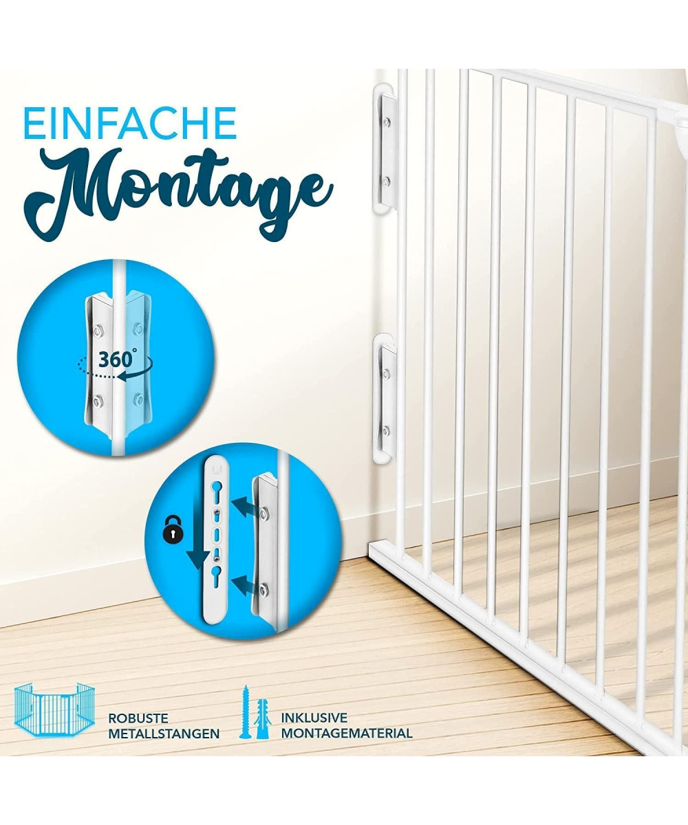 Unser Kaminschutzgitter bietet eine innovative Montagetechnik . Die einzelnen Elemente lassen sich innerhalb weniger Sekunden ausziehen - einfach auspacken, ausziehen und freuen! Das Kindergitter lässt sich durch die flexible Wandmontage , fast an jeder Wand montieren. Die 360° drehbaren Wandarmaturen, lassen sich zusätzlich noch in der Höhe verstellen.