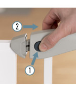 Das Türschutzgitter Berrin hat eine Auto-Close Funktion. Das heißt das Treppengitter schließt sich nach dem Durchgehen wieder sicher und zuverlässig. Das Berrin lässt sich von Erwachsenen mit nur einer Hand öffnen, so haben Sie immer eine Hand frei für Ihr Kind. Der 90° Stopp Mechanismus ermöglicht es die Tür auf 90° festzustellen, um auch mit vollen Händen komfortabel hindurch zu gehen. - Einfache Montage