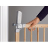 Dieses Schwenkgitter ohne Stolper-Schwelle schützt Ihr Kind bis 2 Jahre vor gefährlichen Wohnbereichen und Treppen. Der Einhand-Sicherheitsverschluss ermöglicht das einfache Öffnen und Schließen des Kinderschutzgitters. Auch lässt es sich immer in Laufrichtung öffnen. Die Breite ist einstellbar von 75,6 bis 110,4 cm. Die Höhe des Treppenschutzgitters beträgt 71 cm.