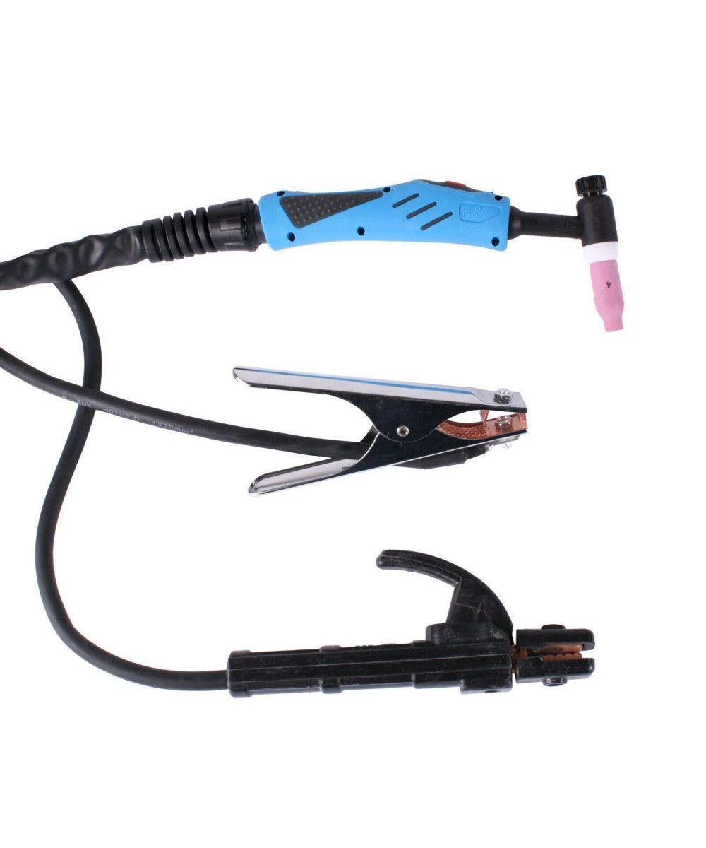 - inklusive 4 m WIG-Schlauchpaket SR 17, 1,8 m Masse- und 2,8 m Elektrodenkabel, schweißt Elektroden bis 4 mm bei 160 A