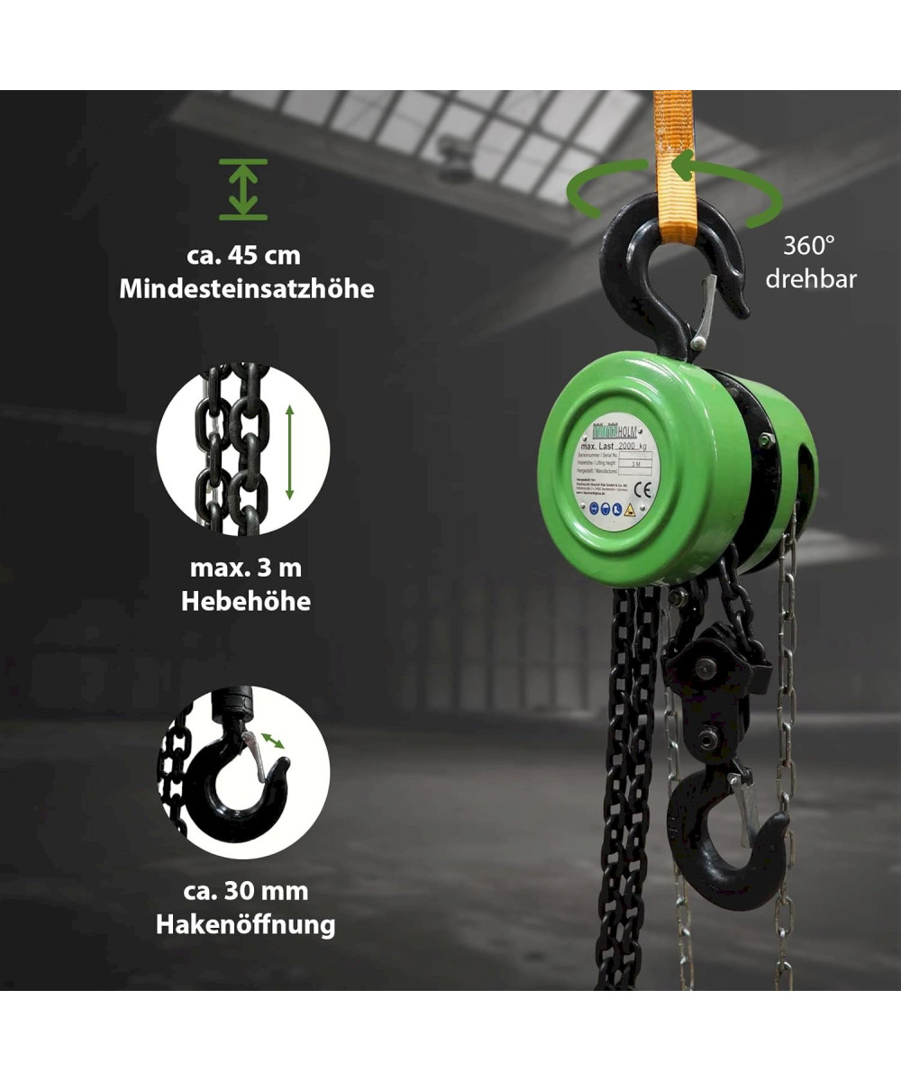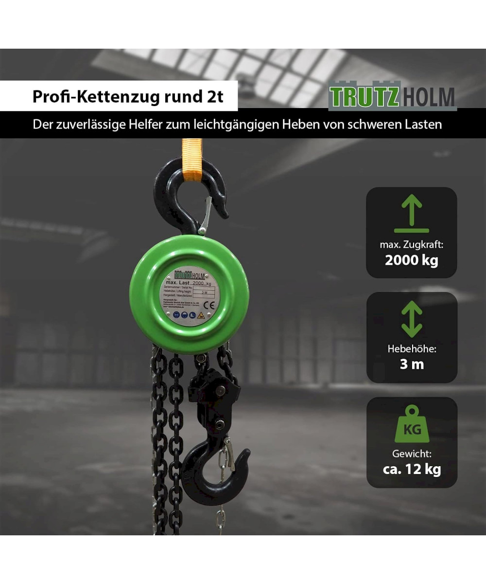 Profi Kettenzug 2t 3m rund Flaschenzug Hebezug Seilzug Kran HSC HZS