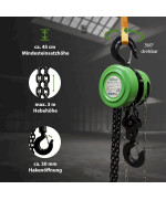 Beide Lasthaken sind drehbar, dadurch können Sie den Kettenzug als auch die Traglast drehen
