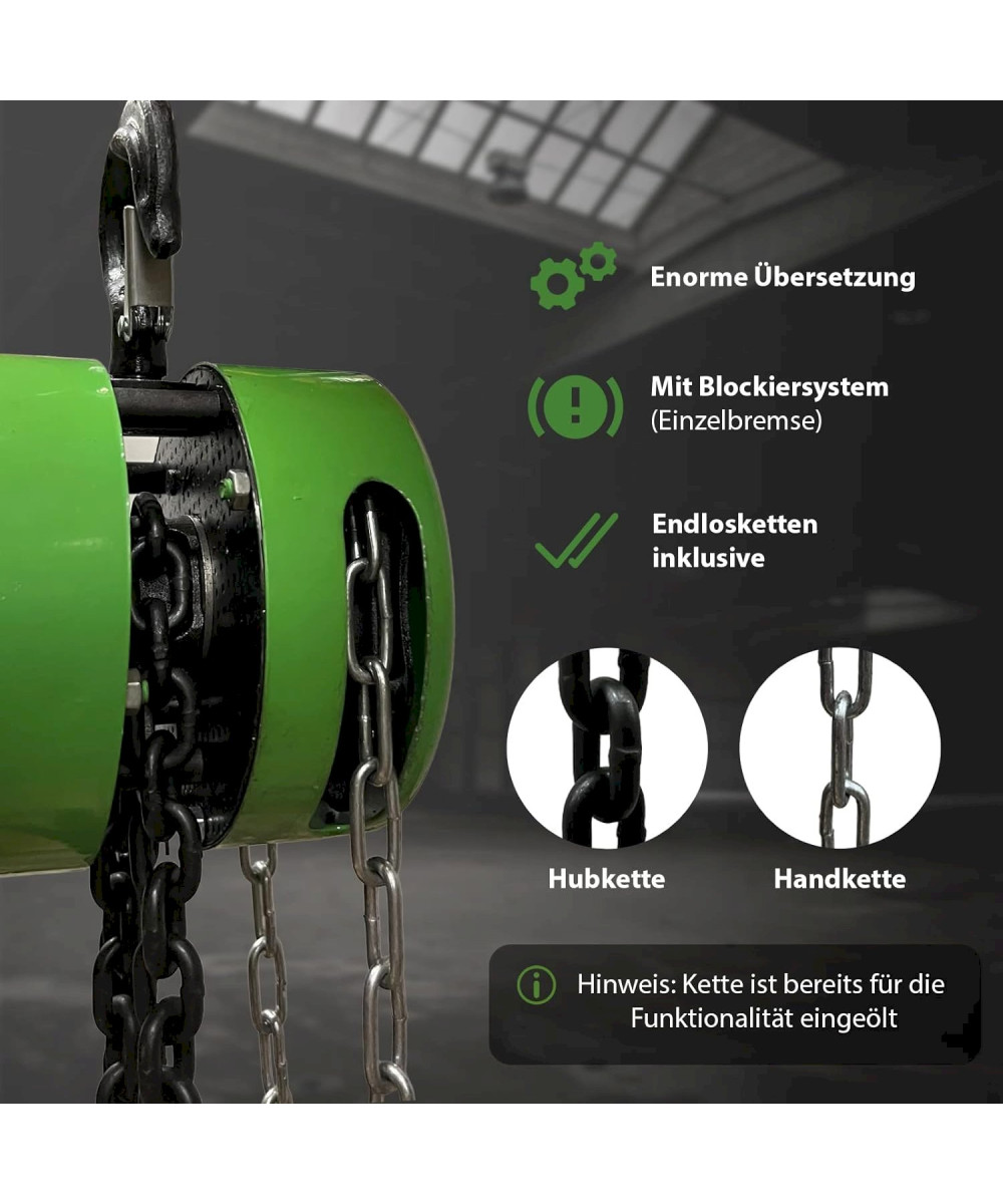 Der Kettenzug ist für das Heben von Lasten bestimmt.