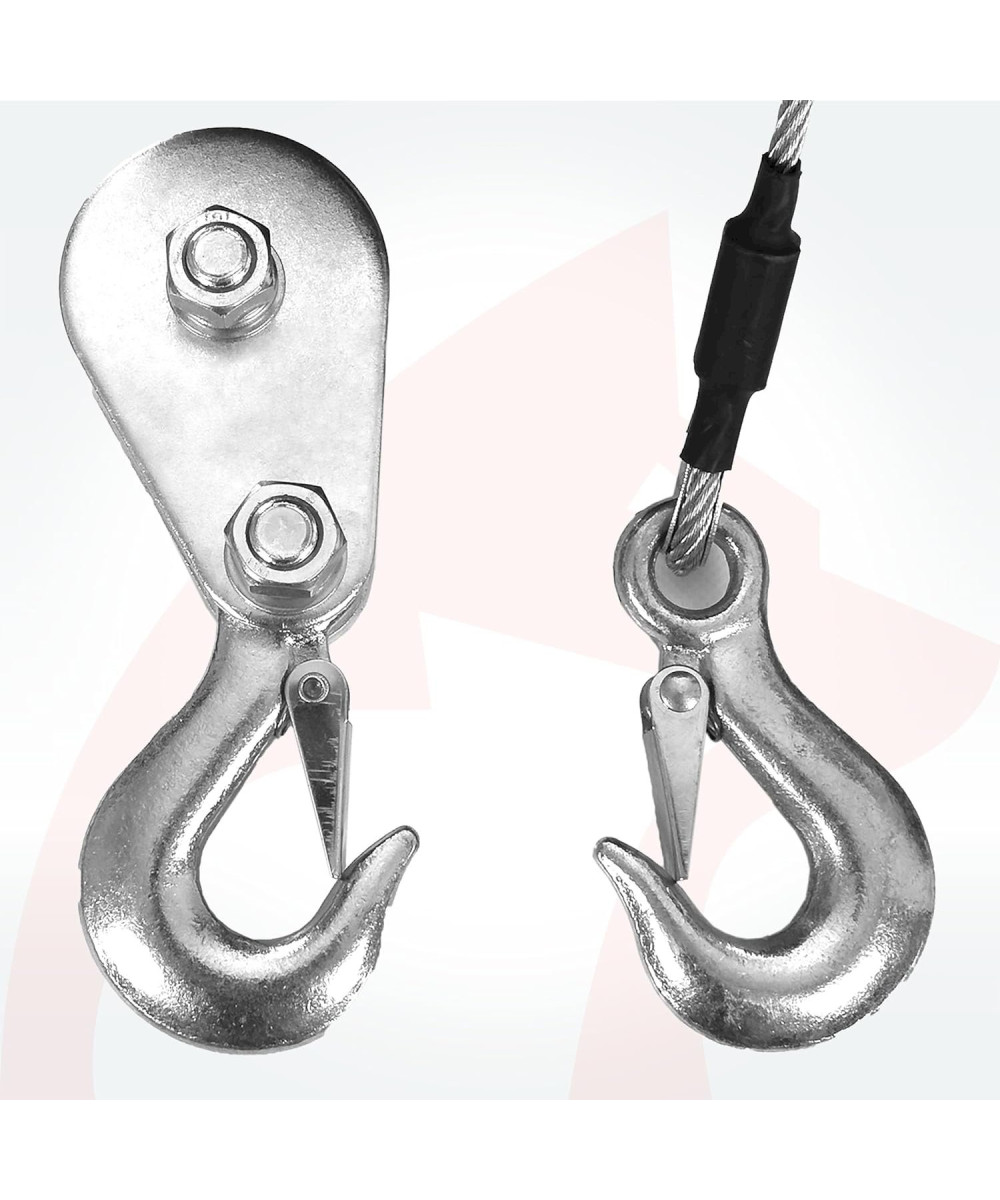 - Mit robustem Befestigungshaken + Umlenkrolle für doppelte Zugkraft